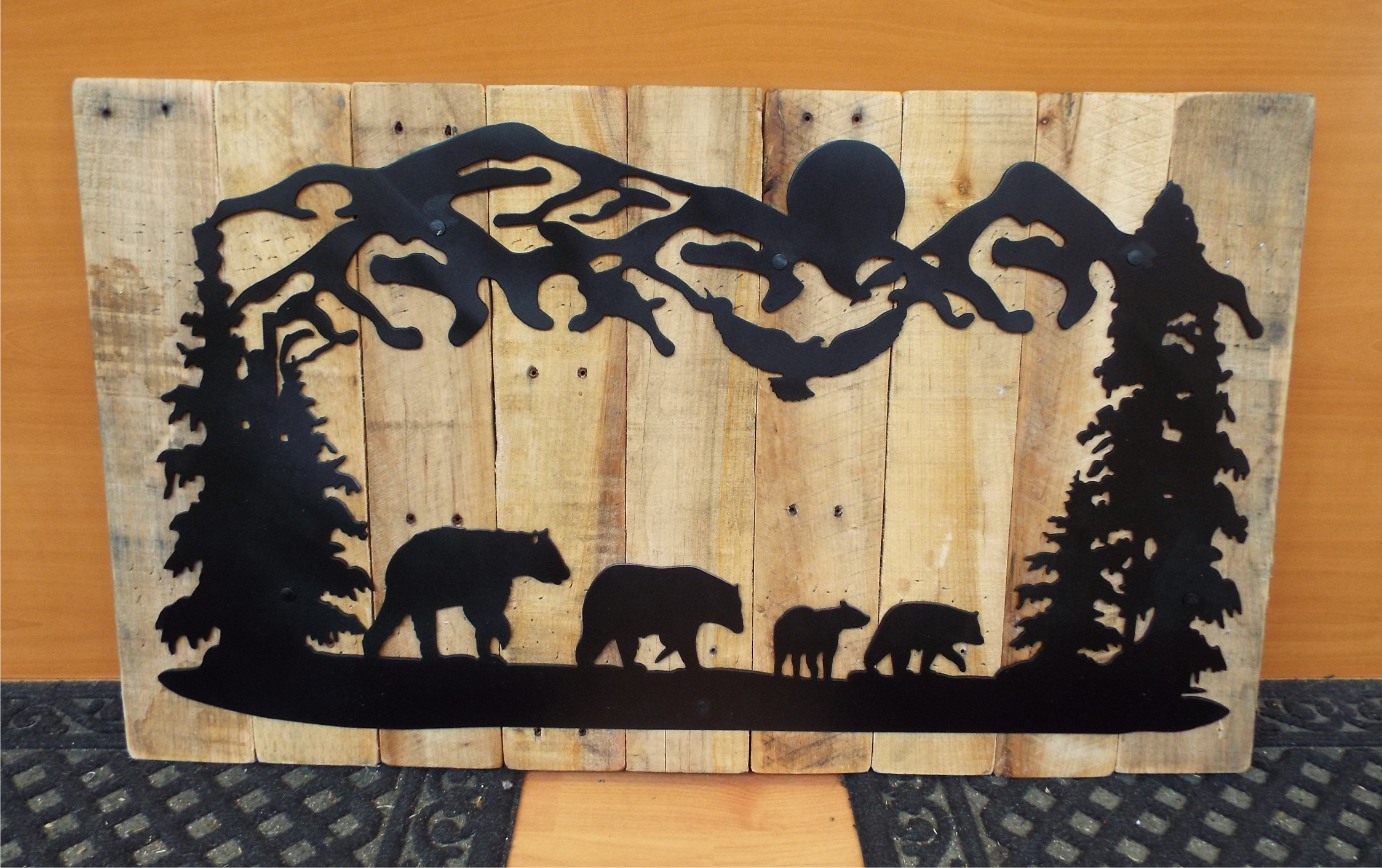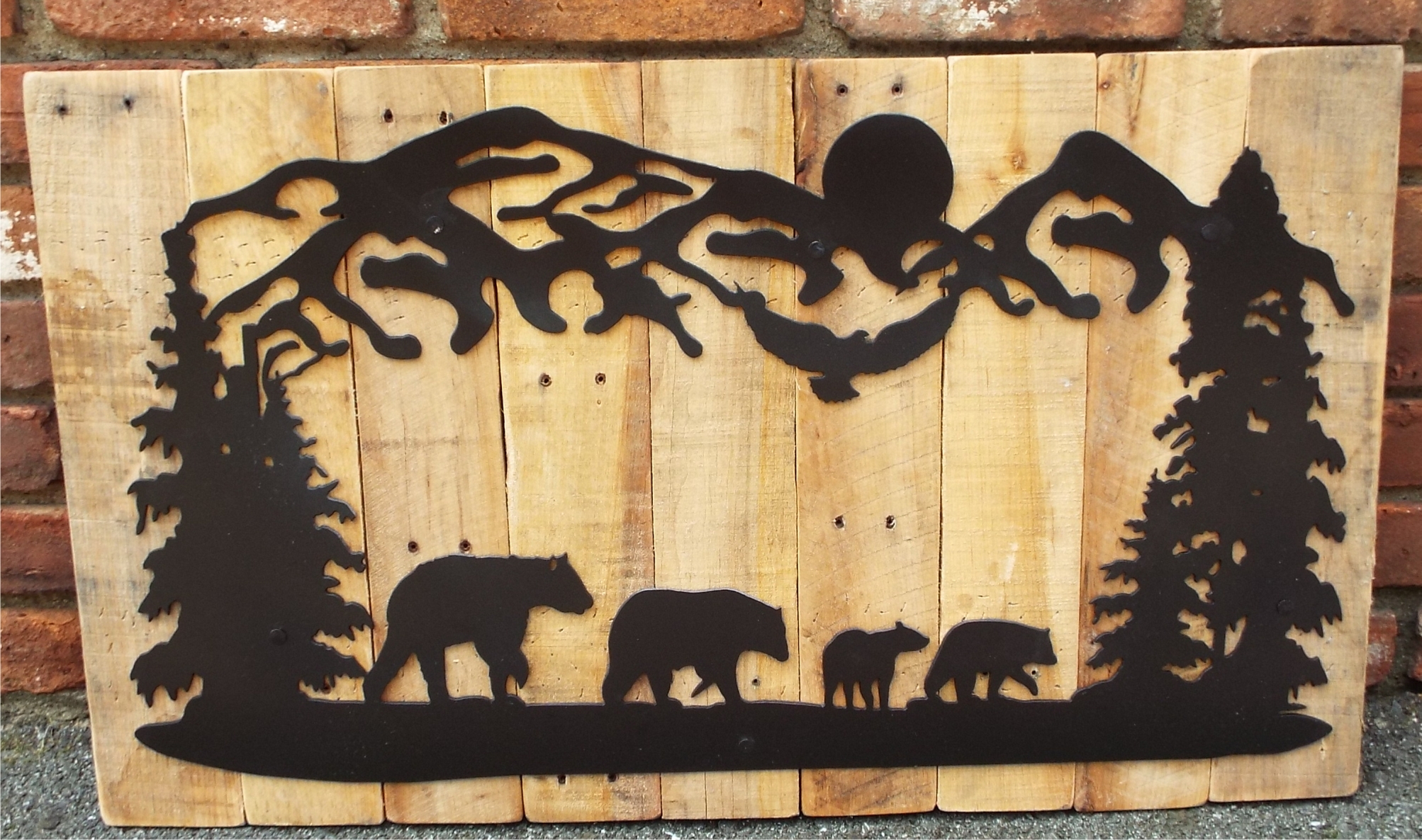 Bears and Cubs | Custom drawn metal scene with reclaimed wood backdrop.